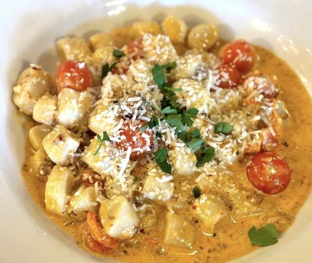 House made little potato dumplings tossed in a creamy sauce with spicy chorizo, garlic, cherry tomatoes and parmesan. Creamy, spicy, and cheesy goodness!